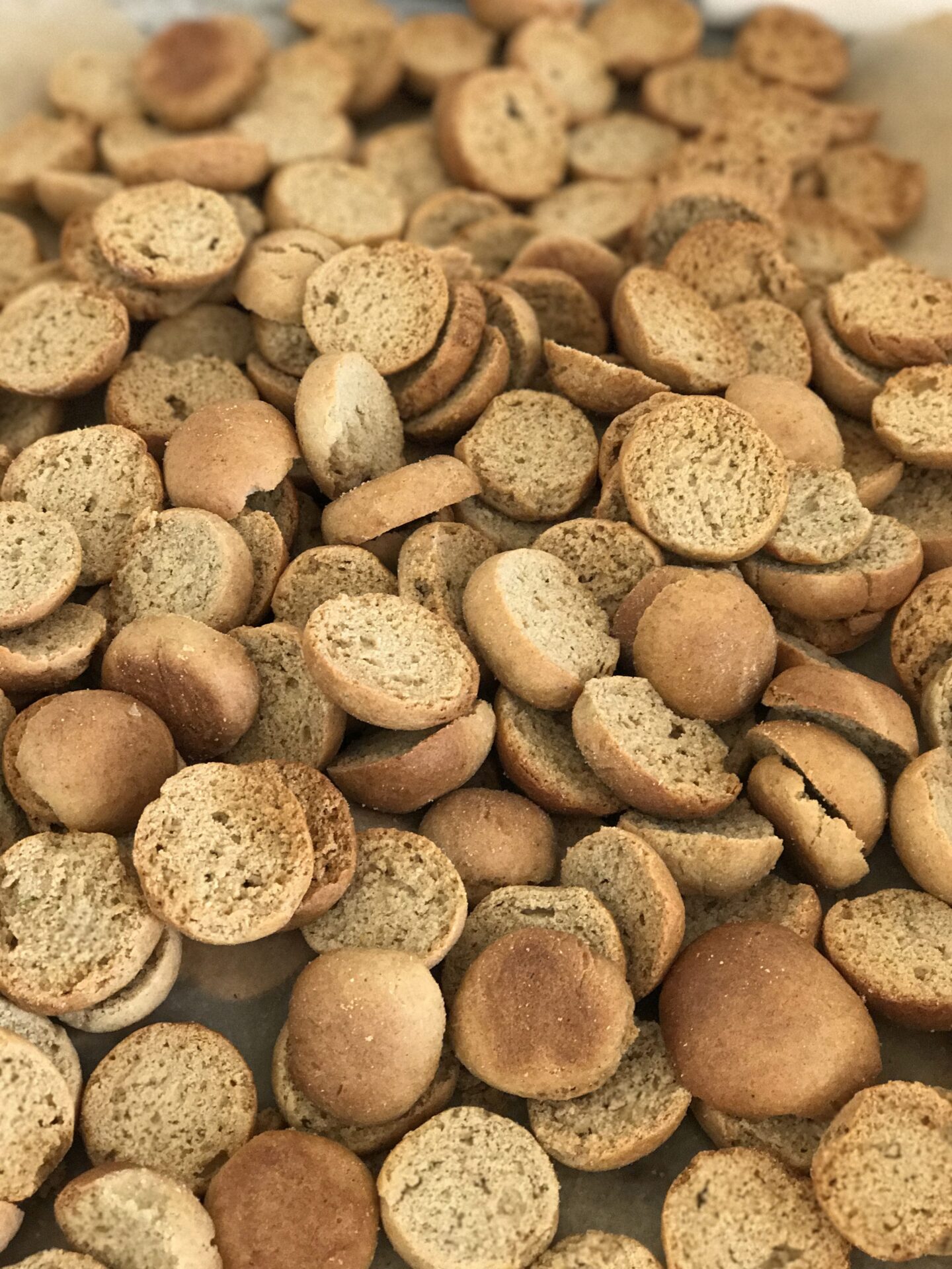 Rør æg med sukker tilsæt lunken mælk med blødt smør og dernæst mel som du har blandet med bagepulver, kardemomme, citronskal og salt. Ælt så du en jævn dej. Du kan vælge, at rulle dejen i lange pølser, som hvor du skærer små stykker, ca. som en lille valnød. Du kan også bare tage små stykker af dejen. I begge tilfælde rul dem i håndfladen så du har små glatte boller. Bages ved 190 g i ca 15-18 min – de skal være lysebrune – afkøl, så skæres de over og lægges med skærefladen opad på bagepladen i ovnen ca. 165-170 g i ca. 30 min – tjek undervejs de skal være lysebrune og sprøde. Afkøl om kom i lufttæt dåse.