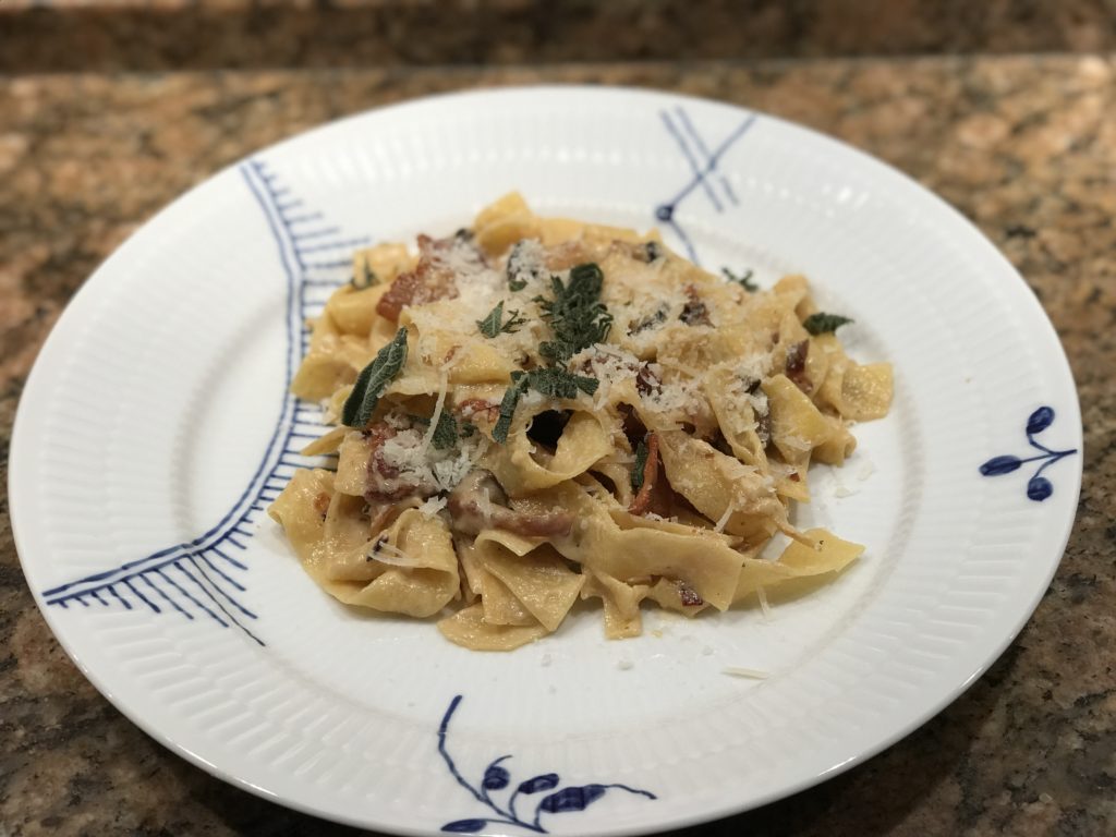 Jeg tror jeg på et tidspunkt serverede pasta, måske for ofte, men efter en lang dag så kan man have et måltid klart som er lækkert på under 30 min. Nu hvor jeg har mere tid, ja så bruger jeg pastaen anderledes. Vi venter på forår og de nye danske kartofler og efter inspiration fra en rejse til Rom, så er det tid til at servere pasta carbonara.