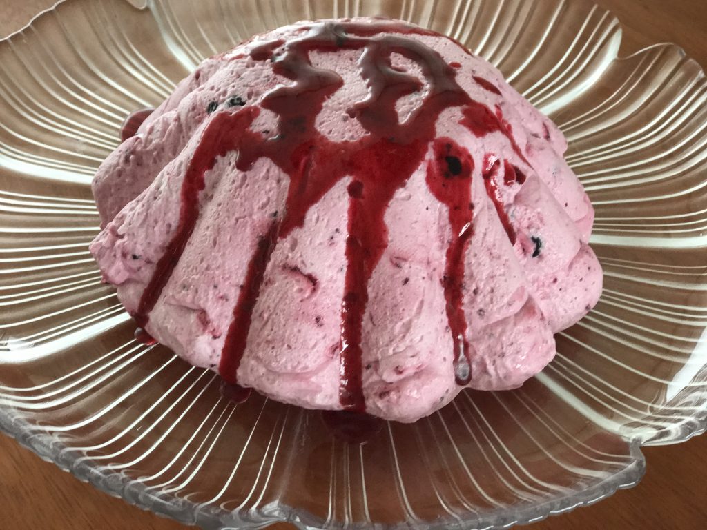 Varm lidt af solbærpuren med lidt creme de cassis – passer det gennem en sigte og hæld det over lige før servering! Denne dessert er enkel – men man skal lige have en god føling med flødskummet så desserten ikke bliver for stiv men heller ikke for blød!